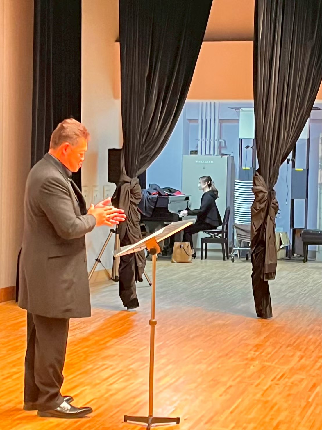 10:00に、会場の「人材派遣ワイズコーポレーション境総合文化センター」(いつも大変お世話になっております!!)集合 ↓ 10:20にいよいよ市民文化祭開演! ↓ 12:00頃、各自控え室で昼食 ↓ 14:30頃、リハーサル開始 ↓ 15:20頃、SMC演奏開始!